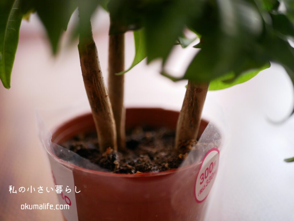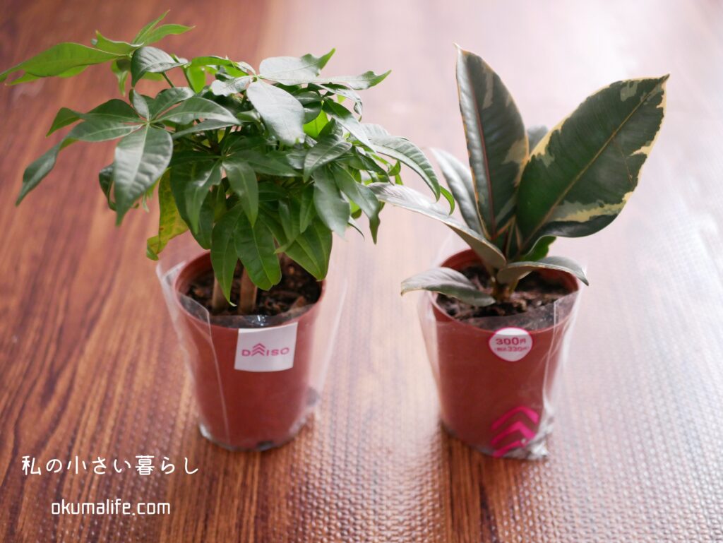 先日、ダイソーを覗いてみたらずっとお迎えしたかったパキラとゴムノキを発見。
