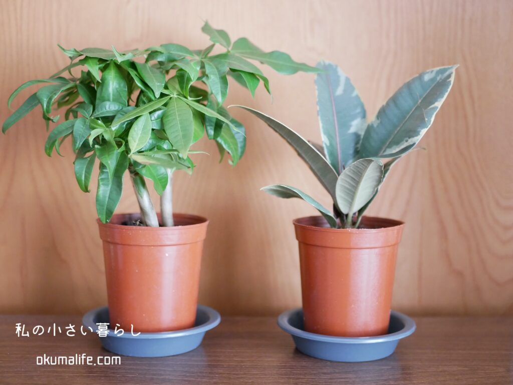 今回新たに仲間入りしたパキラとゴムノキを大事に育てていきたいなと思っています。