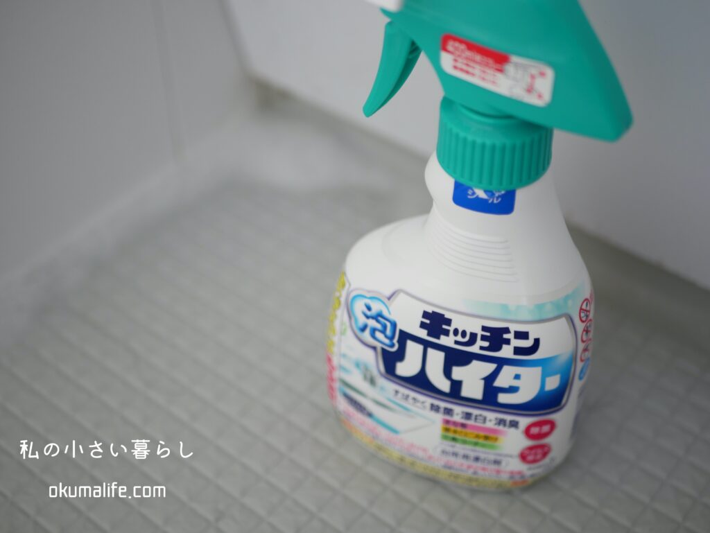 まずはカビの部分にはキッチン泡ハイターを吹きかけて放置。