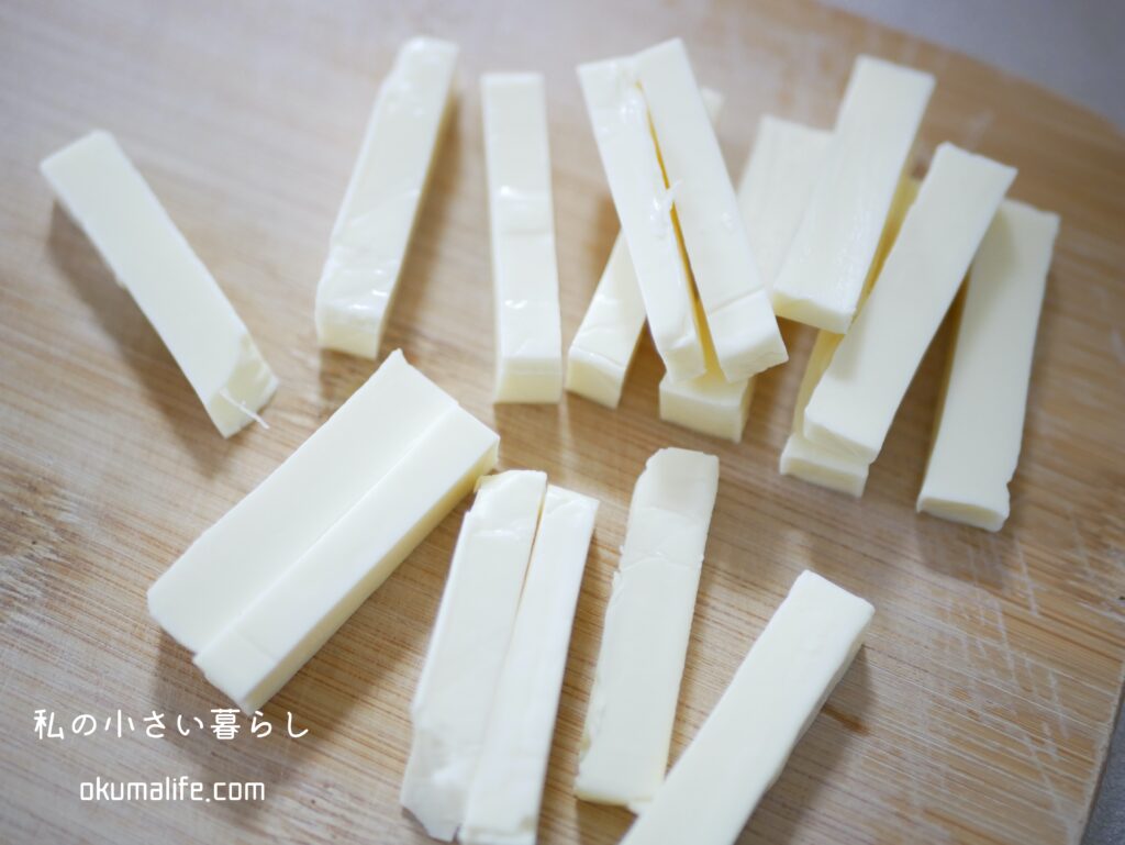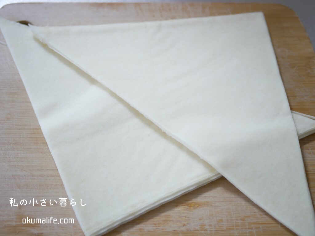 春巻きの皮は大体10枚入りが多いので、半分にカットすると20個作ることができます。