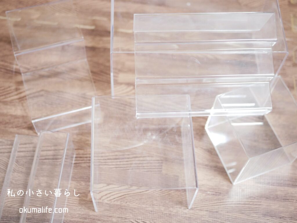 以前使っていた様々な形・サイズのディスプレイスタンド。