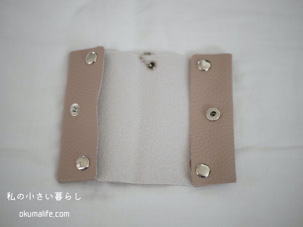 ケースを開くとこんな感じで、ボタンで留められるようになっています。