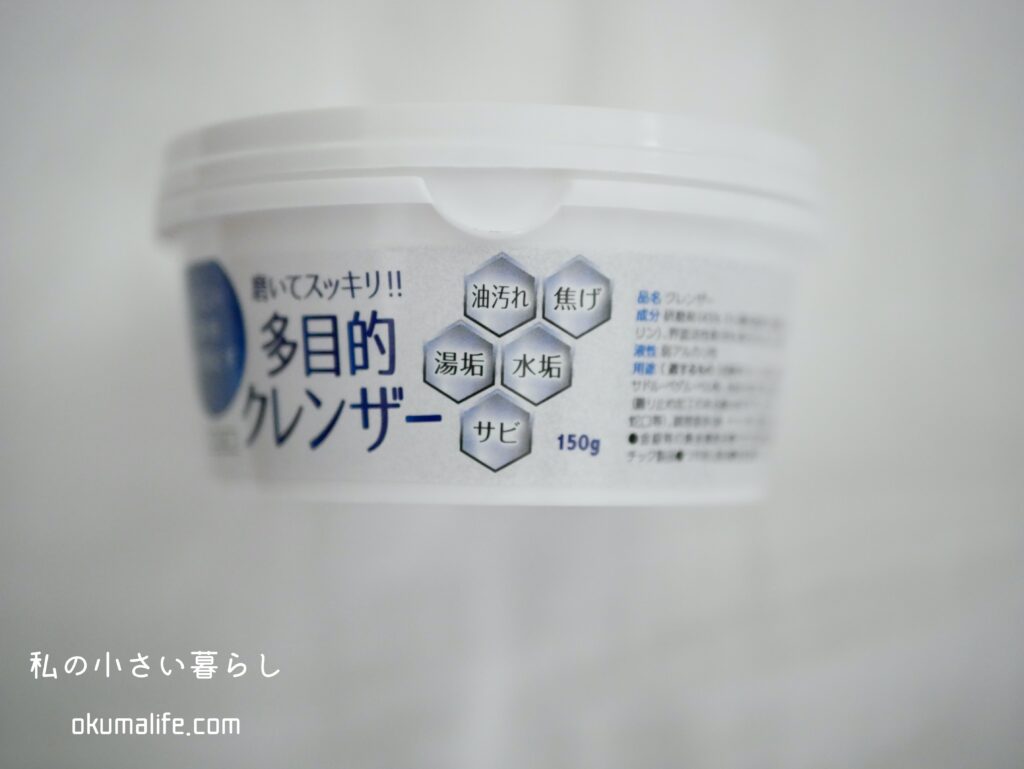 気になっていた100円ショップの「多目的クレンザー」を使ってみることにしました。