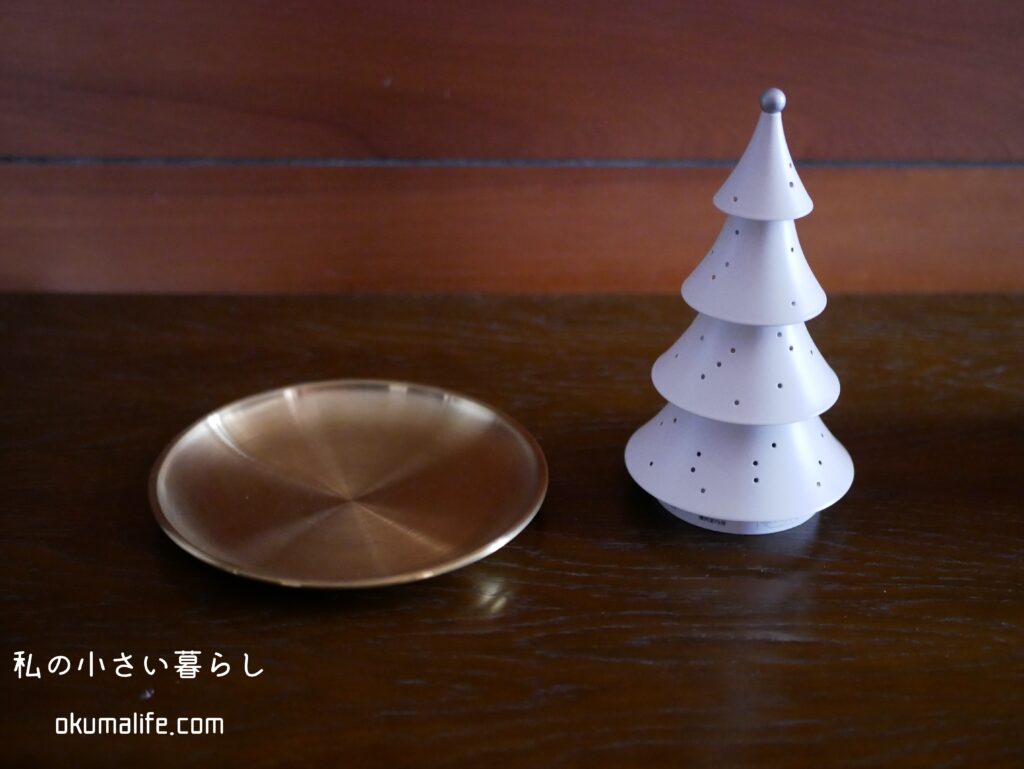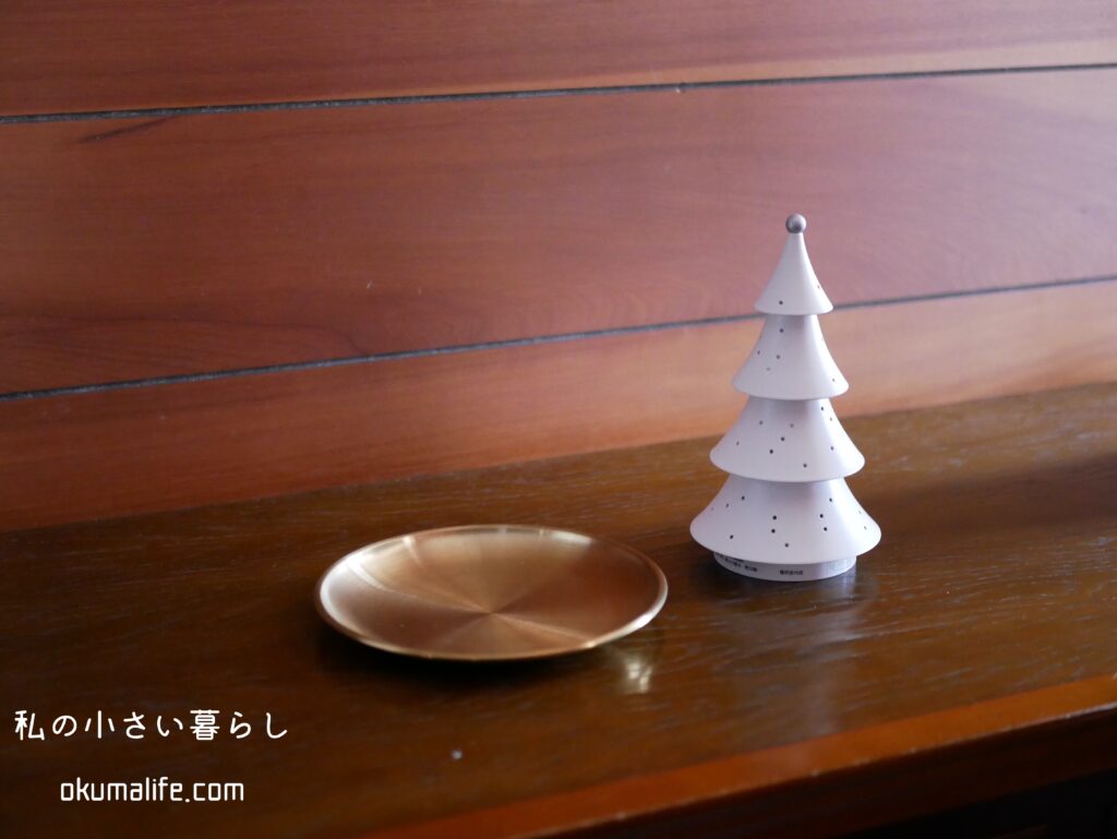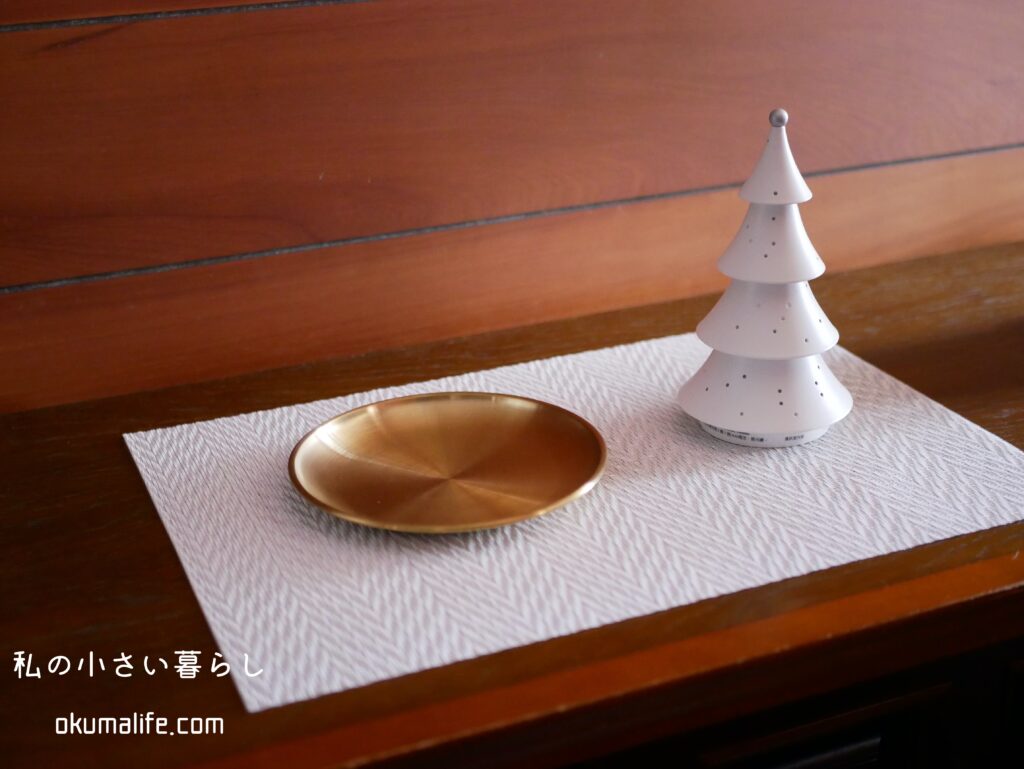 その横のゴールドの容器には、鍵などの細々した物置に使っています。