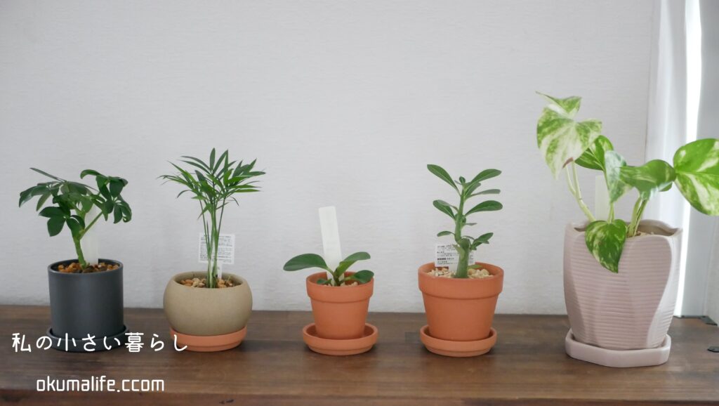 我が家にいる観葉植物は、ほとんどがダイソーなど100円ショップでお迎えしてきた植物。