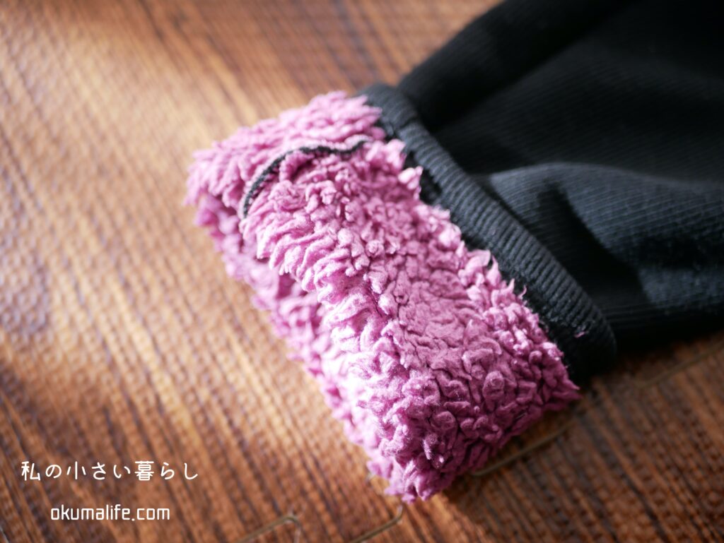 とにかく裏起毛のボアの量が半端なく、モッコモコ。