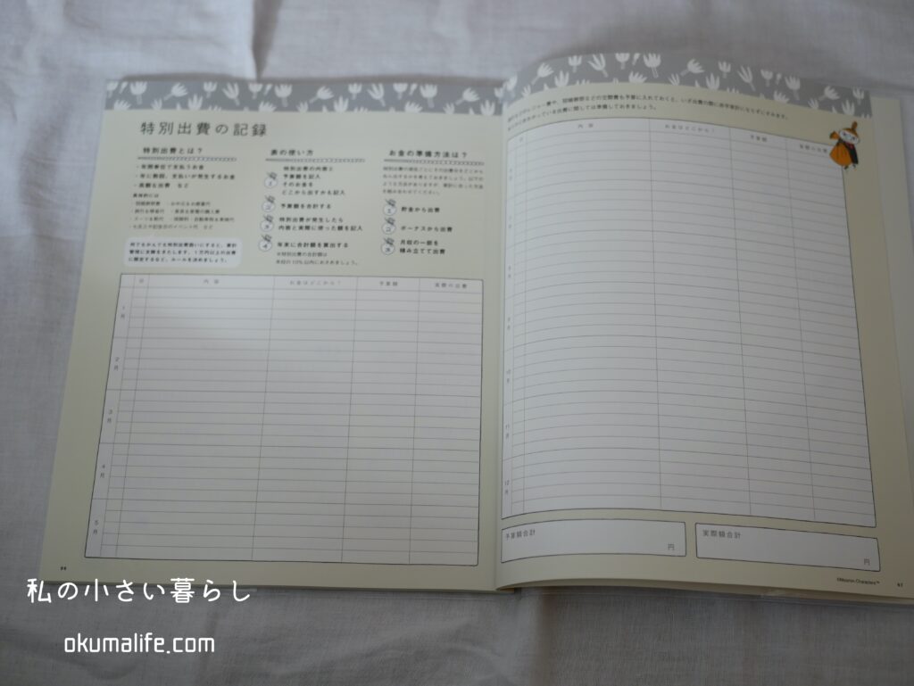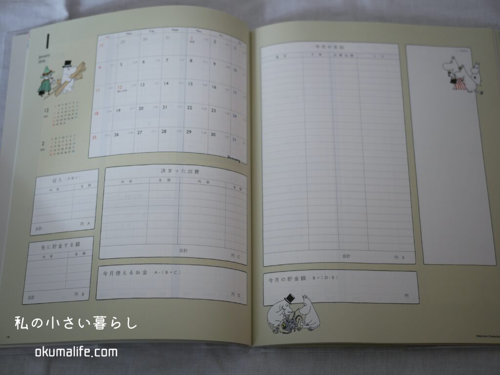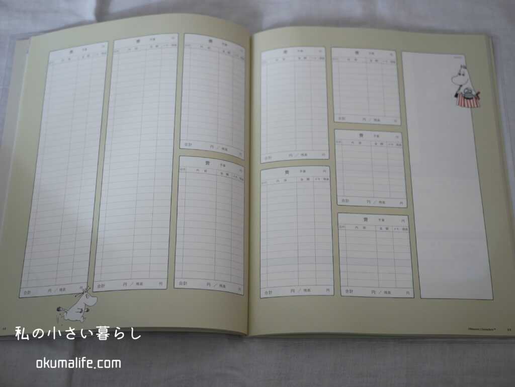ムーミン好きの私にとってはテンションが上がる家計簿となっています。
