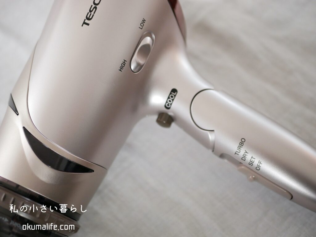 そのほかにも、風力のHIGH&LOWの調節や冷風設定があり