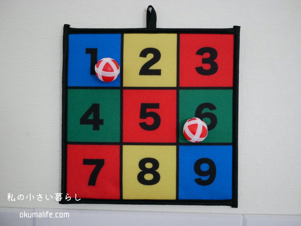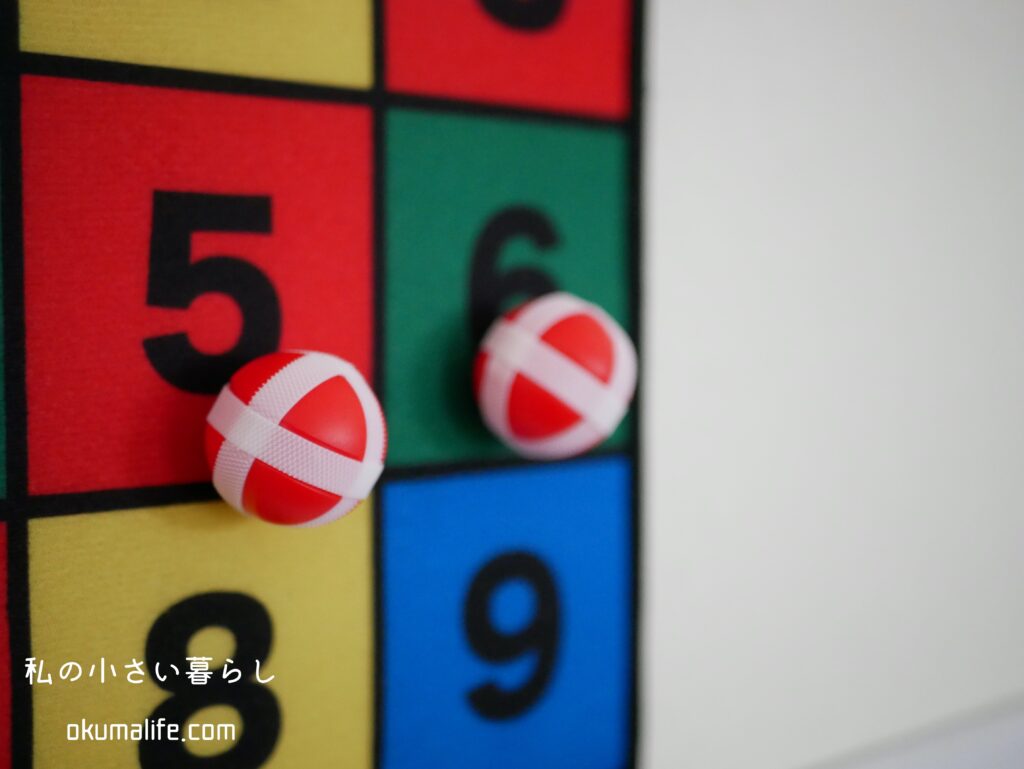 - 投げたボールが的に当たった場合、ボールが当たった番号に付属のマーカーを貼ります。