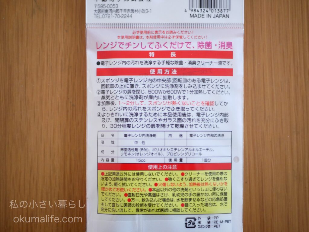 ただチンして1分放置なので、置き時間は短い点はすぐに掃除に取り掛かれるので良いなと思います。