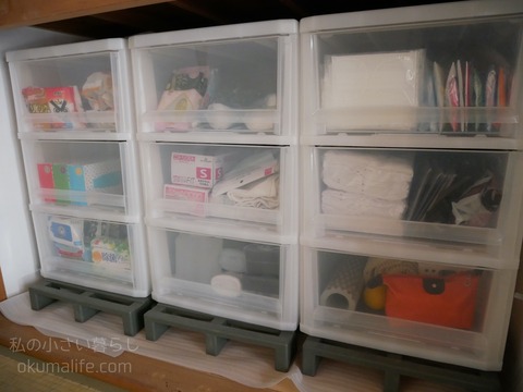 現在は押入れの下の段にカインズの三段の収納ケースを使い